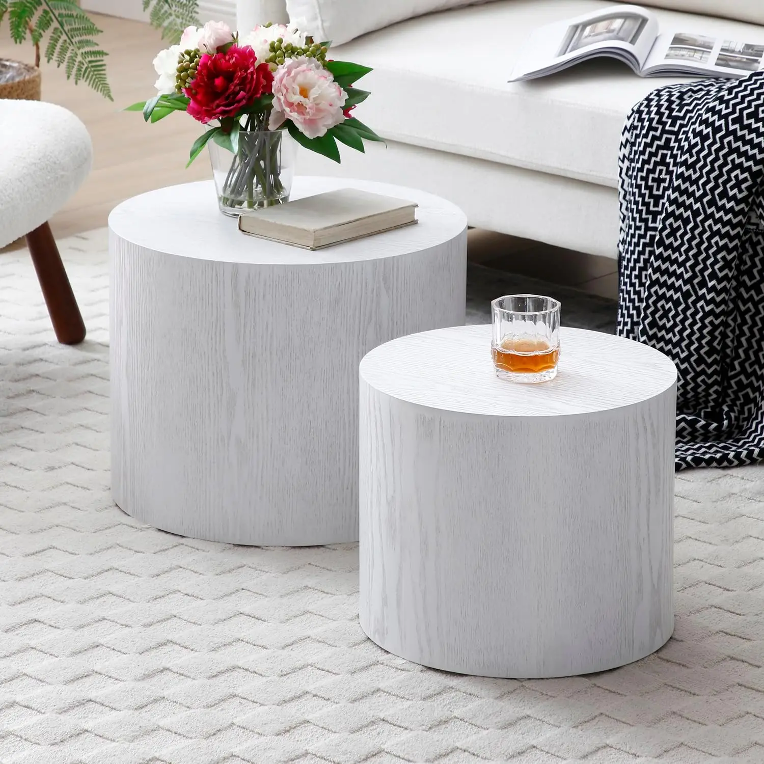 - ☕[Study & Durable] This drum coffee tables adopt MDF material, waterproof and wear-resistant, Multi-step finish process achieves both good looks and superior durability. Foot pads at the bottom can be non-slip to prevent scratches on the floor.